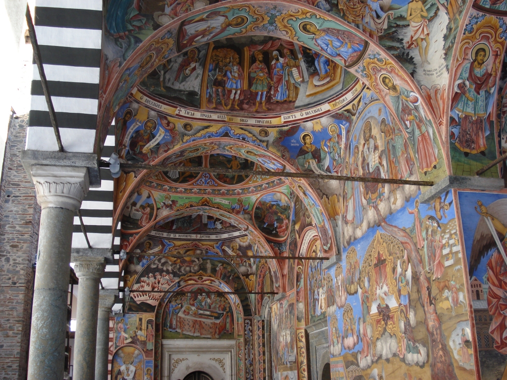 После завтрака – отъезд в Рильский монастырь, где находится вторая чудотворная икона „Пресвятой Богородицы Осеновицы“ и мощи св. Иоанна Рильского Чудотворца. Старинное предание гласит, что она была отдана в подарок Рильскому монастырю сестрой царя Ивана Шишмана, названной „Марой белой болгаркой”, женой султана Мурада І (1319-1389г.г.). Согласно житию св. Иоанна, написанного секретарем византийского имп. Мануила I Комнина (1143-1180г.г.), Георгием Скилицей, император имел страшные боли в руке и решил обратиться за помощь к св. Иоанну. Поклонившись мощам св. Иоанна и помазавшимся маслом из его лампадки, он выздоровел и в знак благодарности подарил обители чудотворную икону Пресвятой Богородицы. После попадания Болгарии в турецкое рабство, мощи св. Иоанна были торжественно перенесены из Велико Тырново в Рильский монастырь при содействии вдовы султана Мурада II - Керы Марии – известной покровительницы христиан. Таким образом, кроме религиозного своего значения как христианская святыня, монастырь приобрел и историческое значение, связанное с судьбой всего народа Болгарии.Рильский монастырь – сокровищница болгарской культуры, комплекс культовых, жилых и хозяйственных построек, общей площадью 8800 кв.м. Отличается уникальной архитектурой.